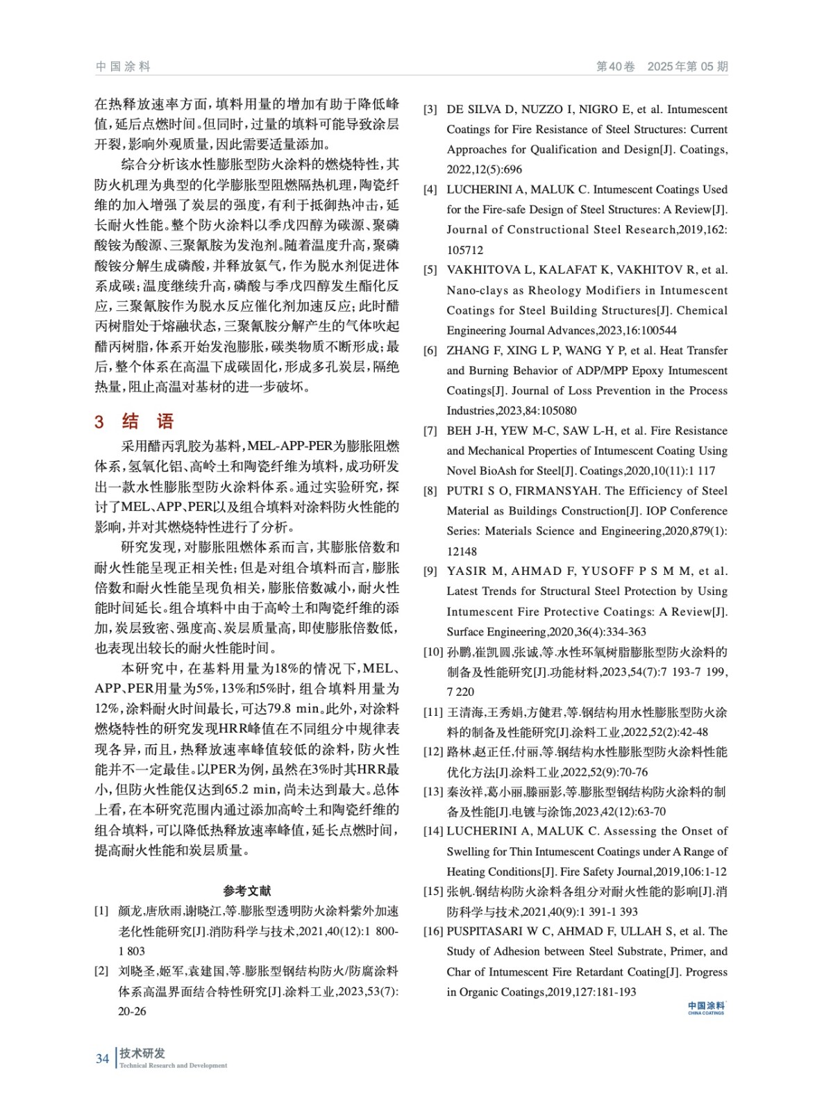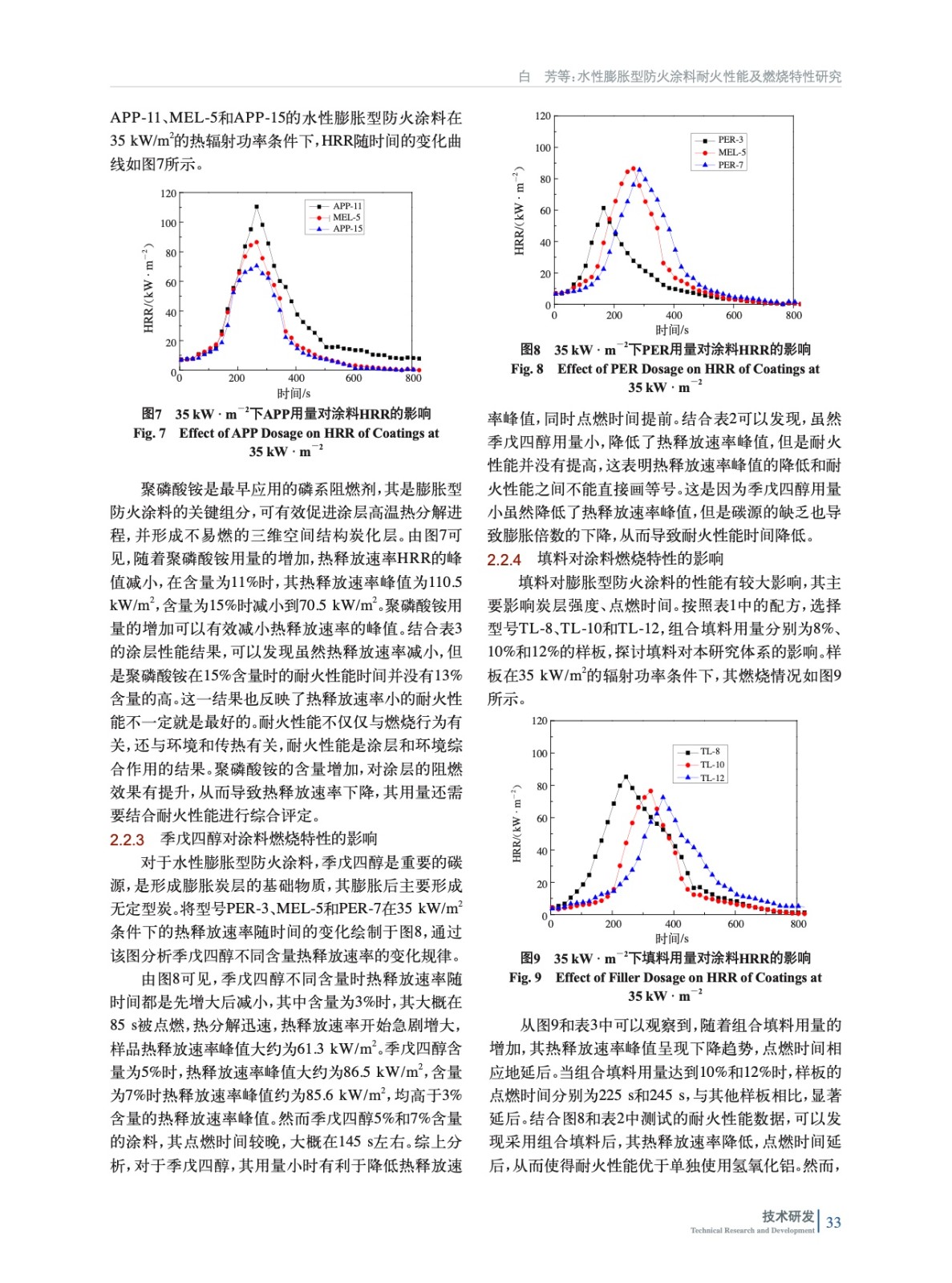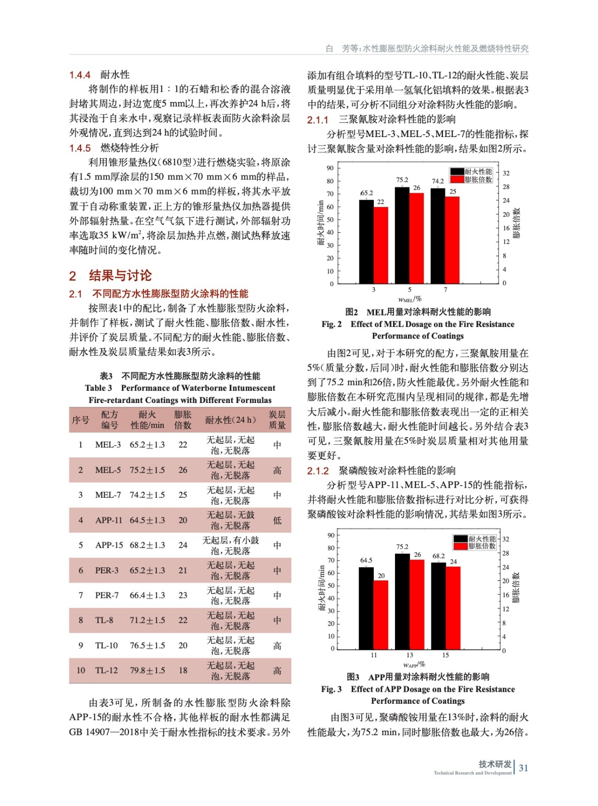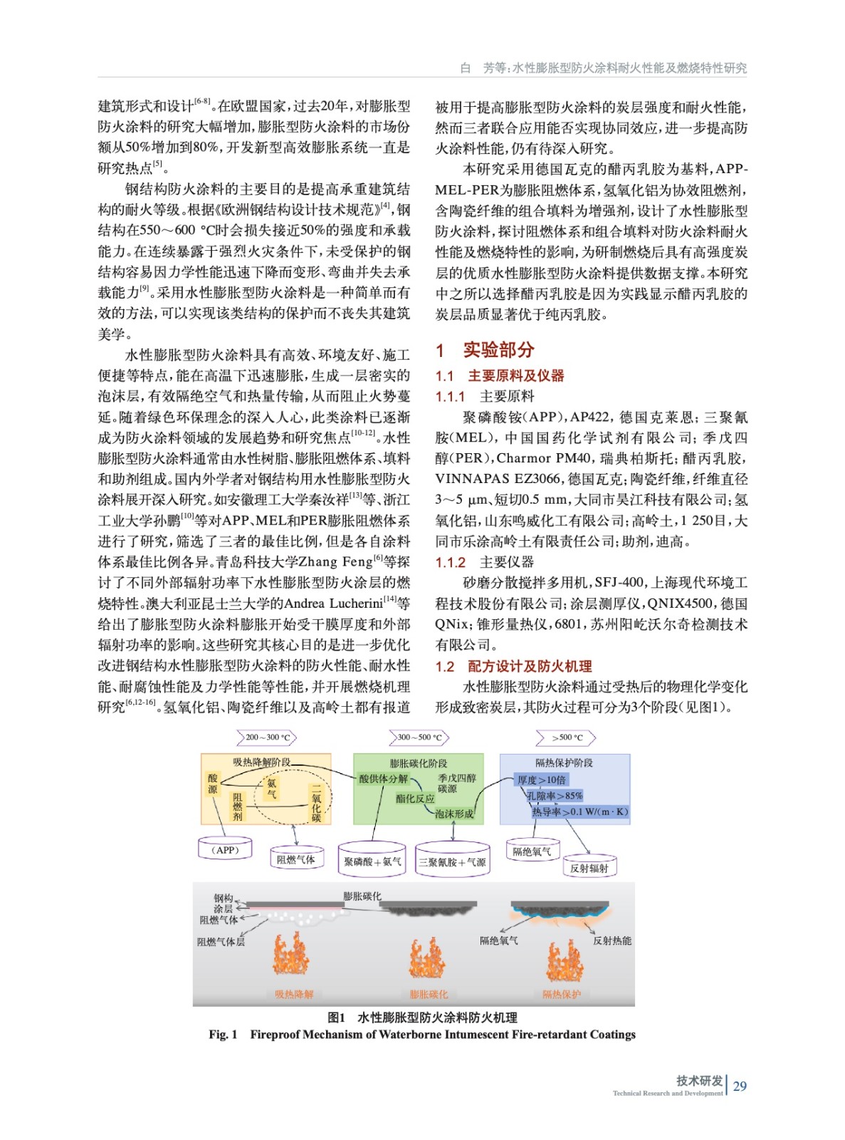 水性膨胀型防火涂料耐火性能及燃烧特性研究