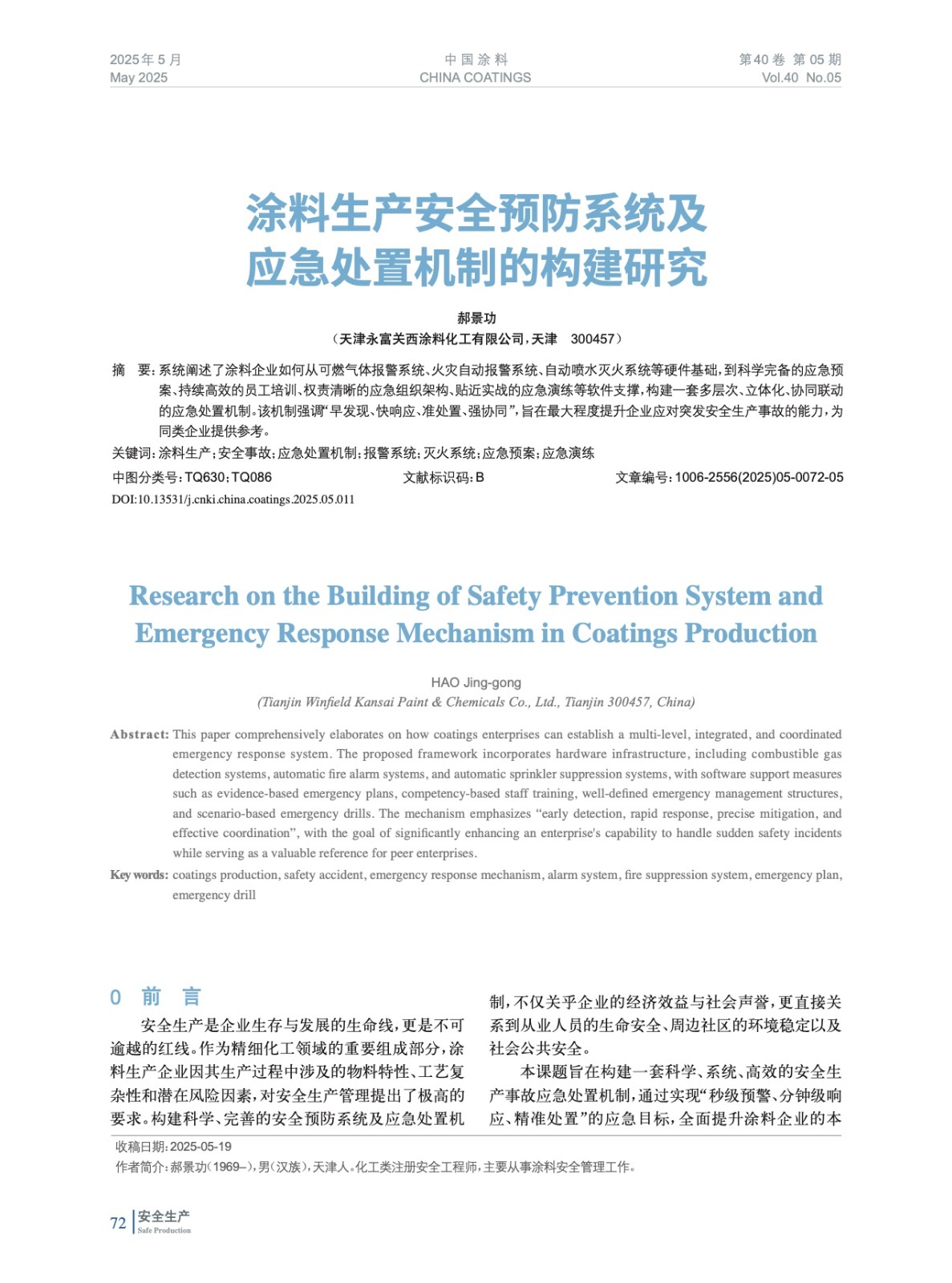 涂料生产安全预防系统及应急处置机制的构建研究