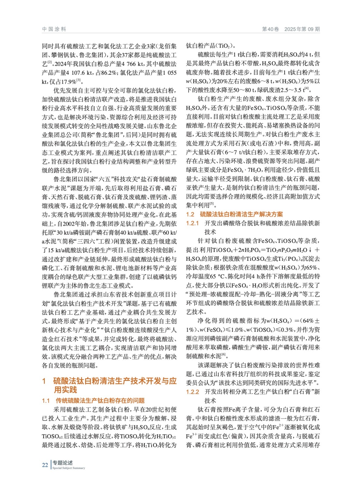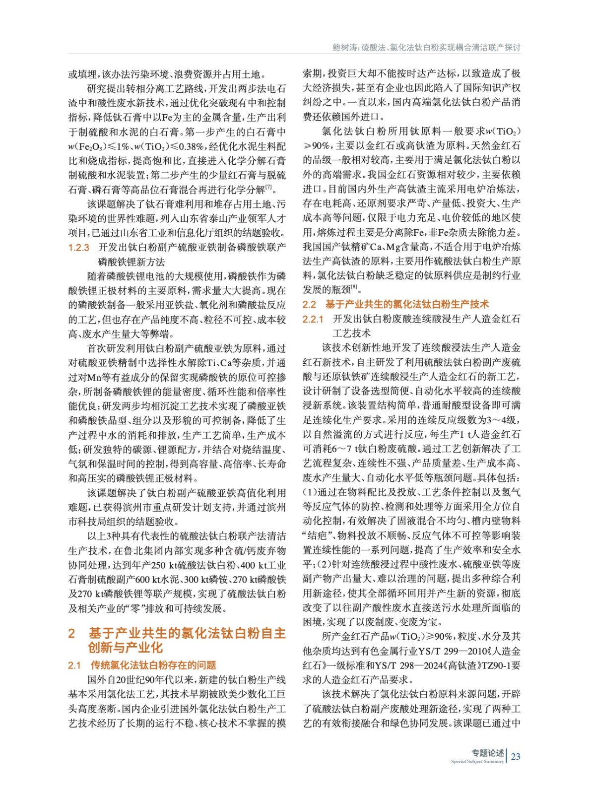 摘要:介绍了我国钛白粉行业发展现状及联产法清洁生产发展趋势,分析硫酸法、氯化法钛白粉工艺优缺点和生产瓶颈,论述磷酸络合脱钛和硫酸浓差结晶除铁、转相分离工艺生产钛白粉“白石膏”、钛白粉副产硫酸亚铁制备磷酸铁联产磷酸铁锂新技术,对硫酸法钛白粉排放的废硫酸、钛石膏、硫酸亚铁实现资源化综合利用,转化成磷酸、硫酸、水泥、锂电池材料;以硫酸法钛白粉废硫酸和还原钛为原料,开发连续酸浸生产人造金红石技术,解决氯化钛白粉原料高度依赖进口的行业难题。