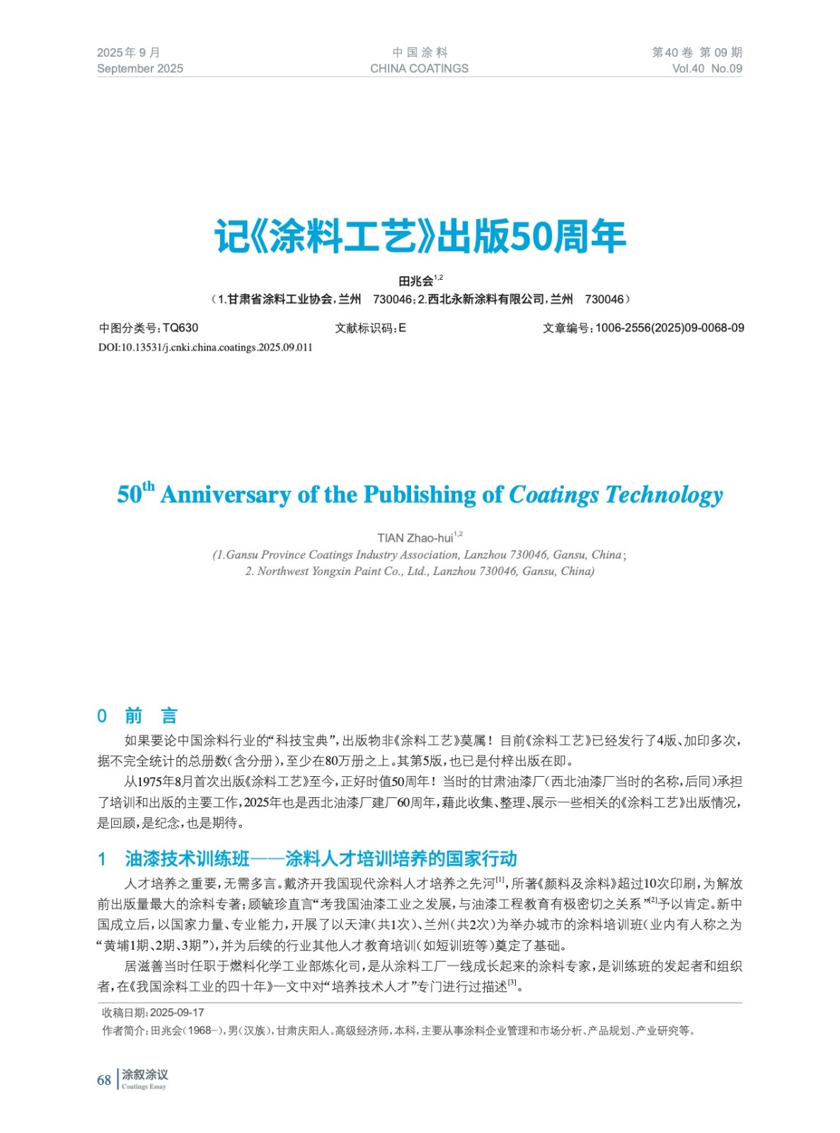 记《涂料工艺》出版50周年